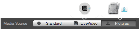 • Time : the theme changes after an user defined interval (ranging from 10 to 600 seconds); - How can I use Live Video or Pictures in DiscoBrick themes? [+]You can customize a theme by replacing various textures present in a theme with your pictures, images or live video. It all depends on what you select in the “media source" . The possible settings are: